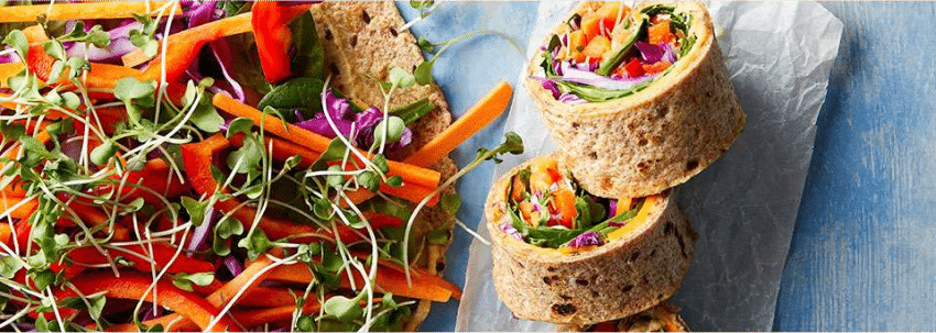 - Fill whole-wheat tortillas with a variety of chopped vegetables.